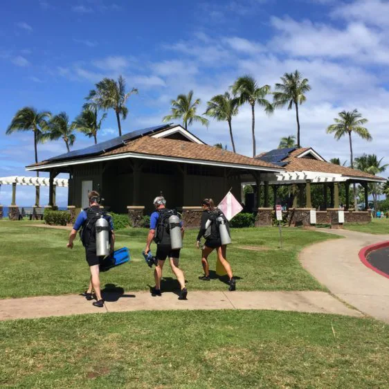 Located on the north side of Black Rock on Kaanapali beach, along a very long sandy coastline of Kaanapali. Currents can run along the shore from north or south but not too strong. There is a shower, restrooms, BBQ stands and a pavilion for picnics & gatherings. Snorkelers in your group can watch you as you are scuba diving.