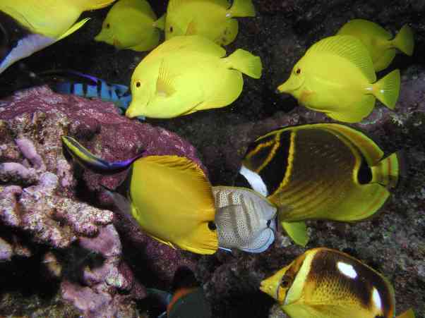 The reef starts 25 feet from the shore in 8 feet of water. Perfect for Intro scuba diver classes, and Scuba Refresher Courses. This dive site displays a colorful reef, Hawaiian Green Sea Turtles and rare Hawks Bill Turtles on occasion. Snorkeling starts 25 feet off the beach.
